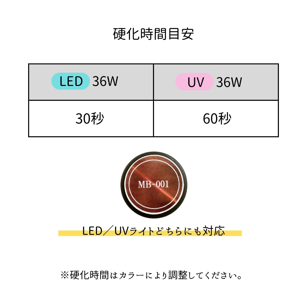 硬化時間:LED36w 30秒 / UV36w 60秒